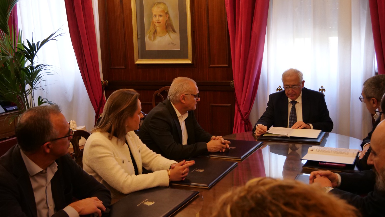 Joaquín Páez, José Ronda y Hugo Morán en la firma del acta de entrega.