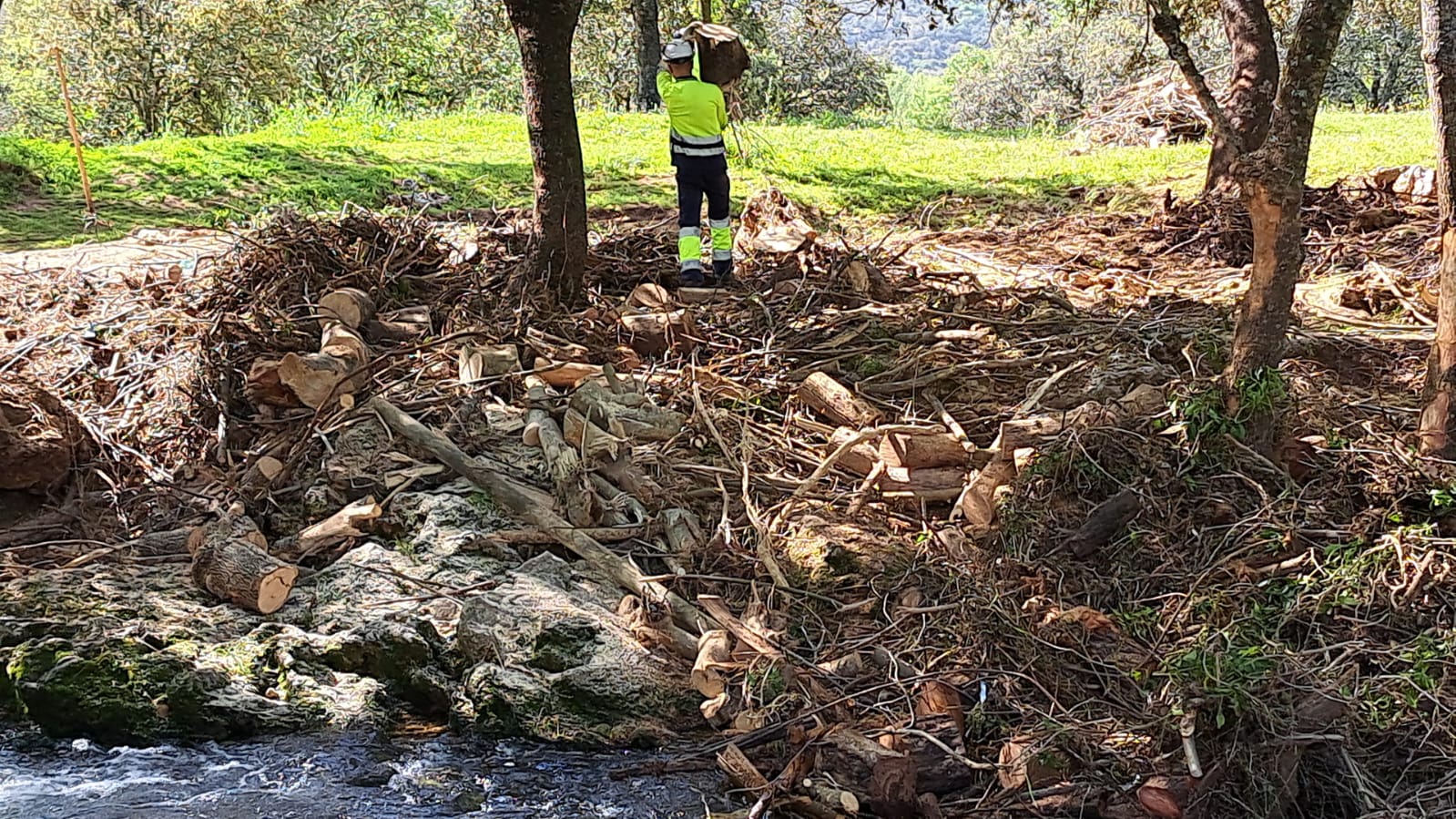 La actuación, que se prolongará durante al menos ocho días, se centra en la zona de las Cascadas del Huéznar, con la finalidad de recoger y sacar del cauce todos los restos de vegetación y troncos, así como aquellos otros elementos arrastrados hasta el río por las avenidas que se produjeron por la borrasca Nelson, el pasado Viernes Santo, en la cabecera del río Huéznar en esta localidad sevillana.
