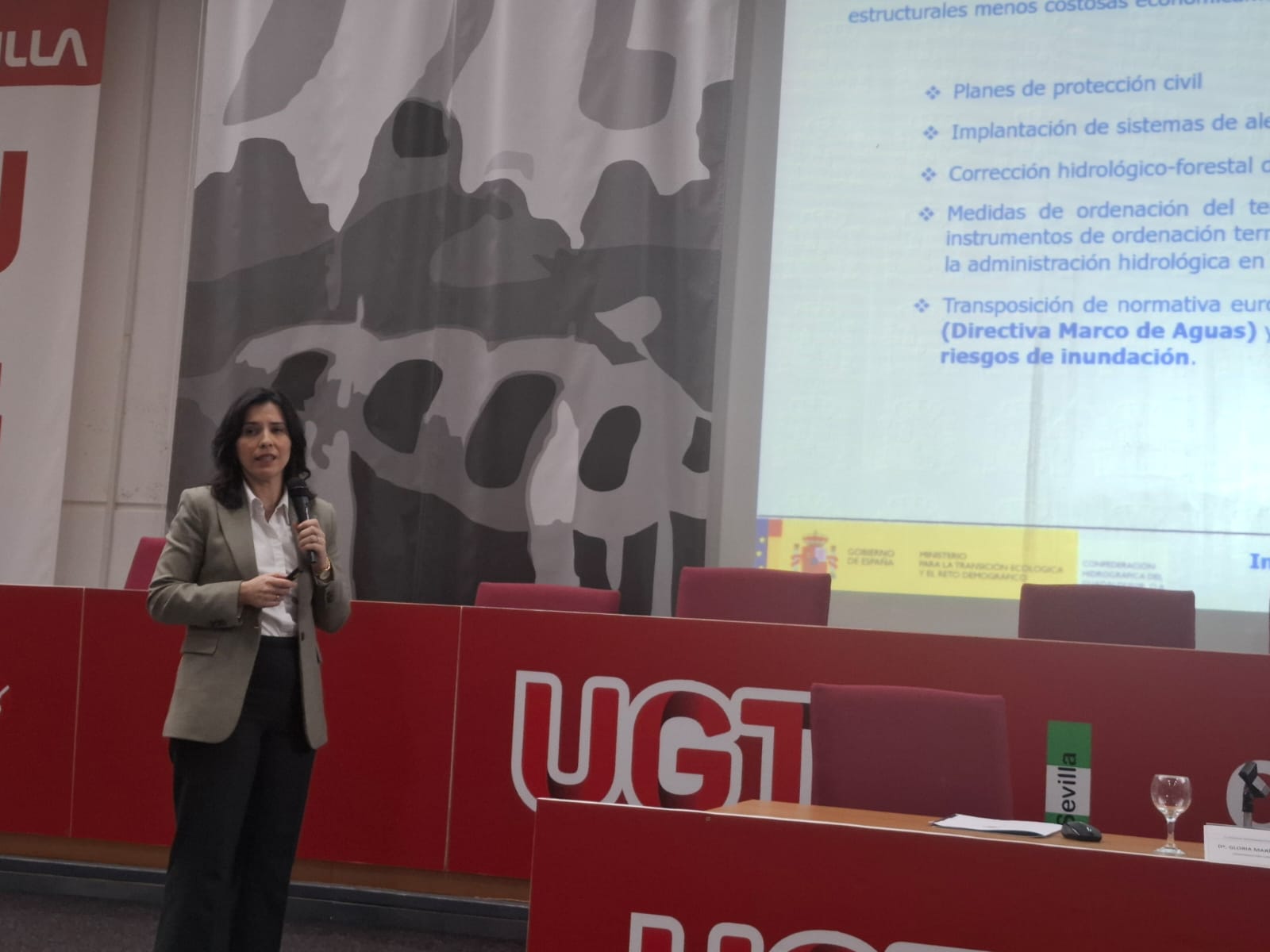 La presidenta de la CHG valora la prevención y la anticipación como claves frente a las inundaciones en la jornada sobre cambio climático de UGT